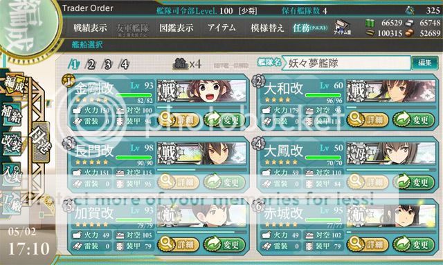 Cons: Augh, my steel and bucket stock are actually declining from day to day now ;_; though that might be because I shifted one expedition fleet from the first area expedition that gives steel, ammo and bucket to #9 (buncha fuel and up to 2 buckets, but takes longer) since my fuel was declining. My stock of buckets ain't too big, but losing a net 4-5/day seems managable, I still have like 15 left so once weekend hits/once I realize there's no more homework for the week I'll swap both expedition fleets back to the short duration expeds that give buckets, that should allow me to last the event.